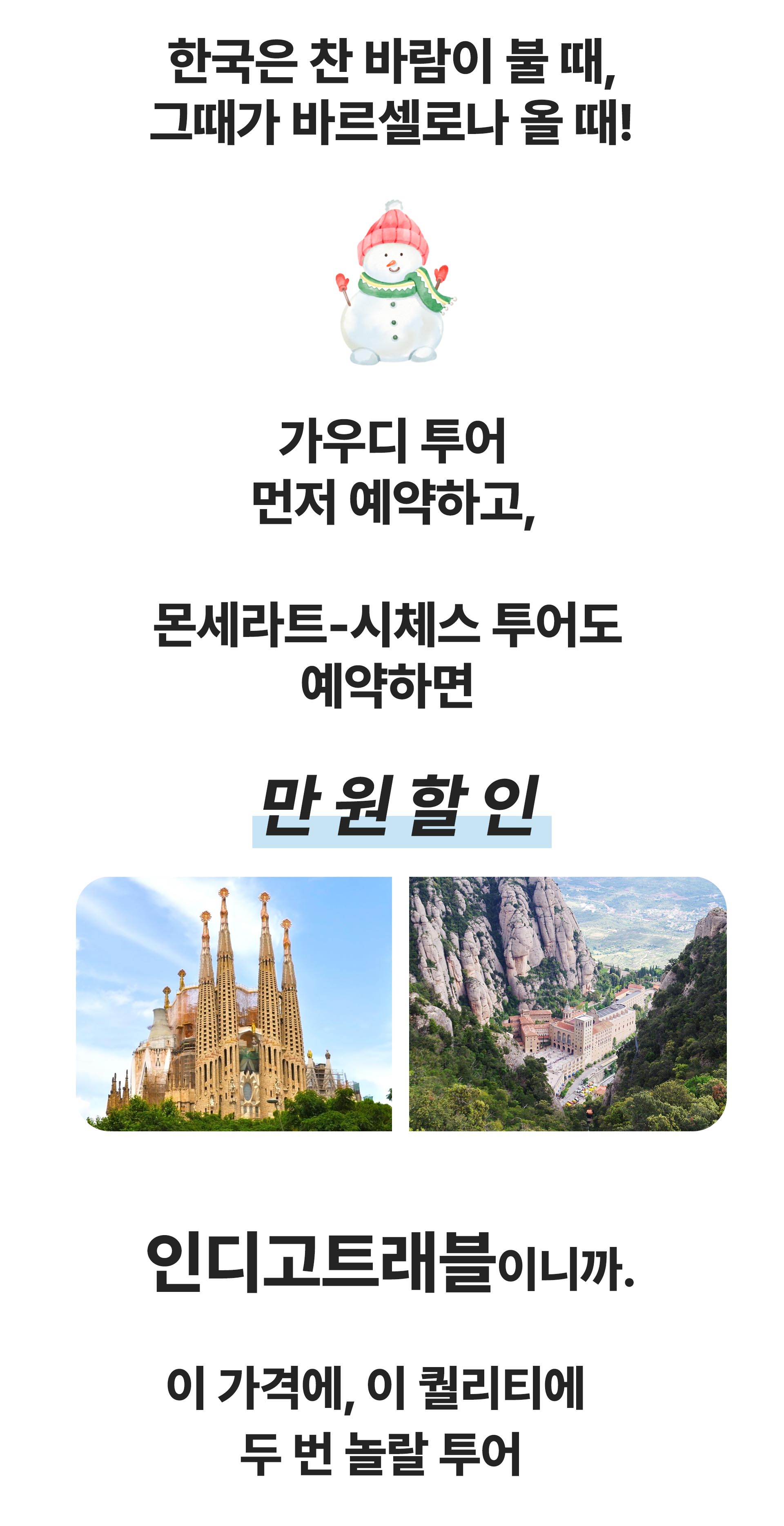 4. 몬세라트는 바르셀로나 시내보다 약간 쌀쌀한 편이므로 날씨에 유의하여 외투를 준비해주시면 좋습니다.