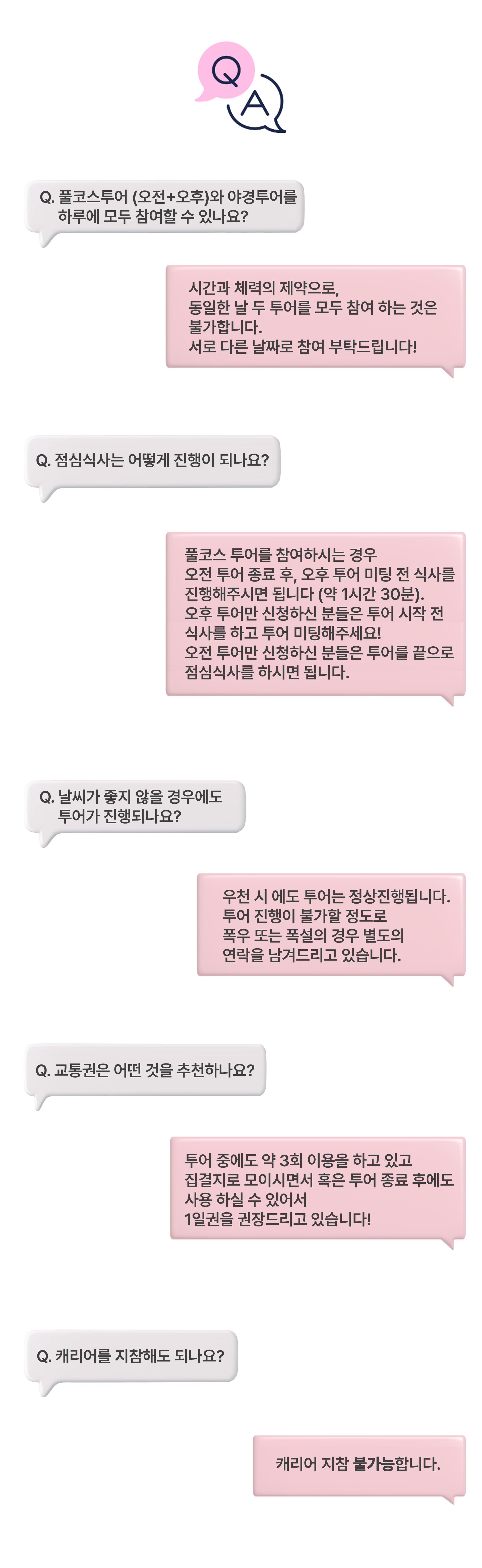 모든 투어는 우천 시에도 정상 진행됩니다.